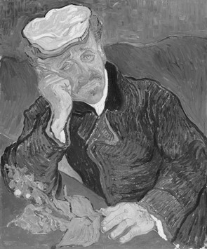 El doctor Paul Gachet era un médico instalado en Auver sur Oise. Fue allí en donde atendió al artista en el último tramo de su vida y en donde se pintó su retrato. De este existen dos versiones, una la que figura en la tapa y otra está en el museo de Orsay en Paris.